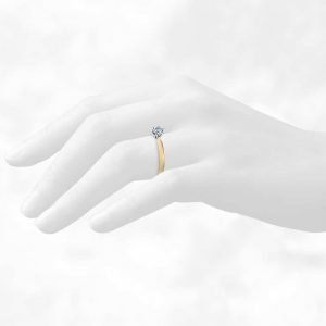 Esta resistente montura para anillo de compromiso exhibe su diamante entre seis puntas, y está elaborada en oro amarillo de 18k solicítalo en blanco 18k.