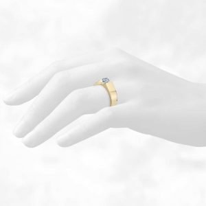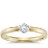 Llamativo y moderno, esta montura para solitario de oro amarillo de 18 k tiene un perfil plano y realza el diamante central de su elección.